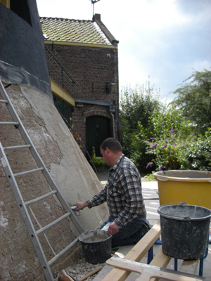 Aansluitend is de molenvoet afgewerkt met een hydraulische kalkpleister.